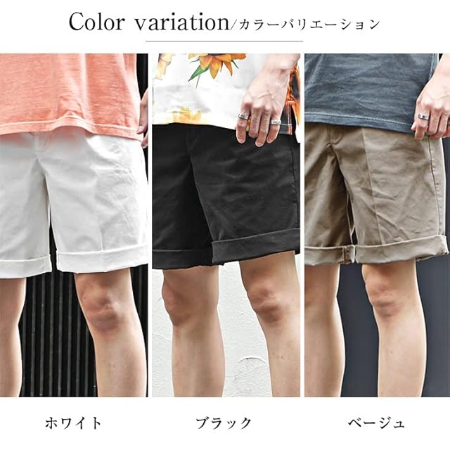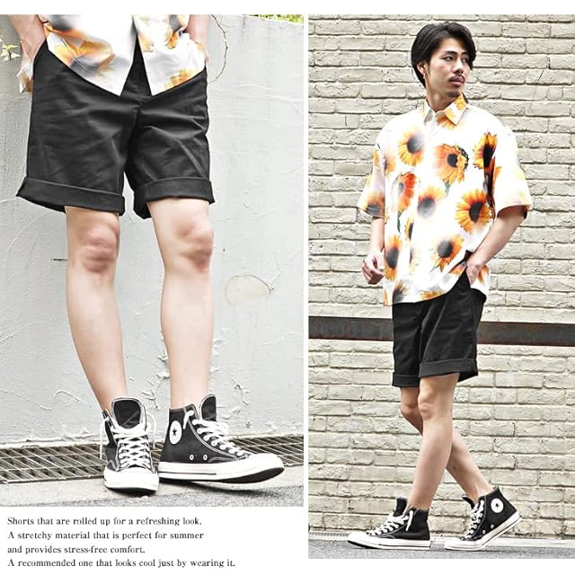[サムディフ] 【ロールアップショーツ】 ハーフパンツ メンズ ショートパンツ 短パン 半ズボン シンプル 無地 コットン ストレッチ サーフ系 ストリート 夏 夏用 L ブラック