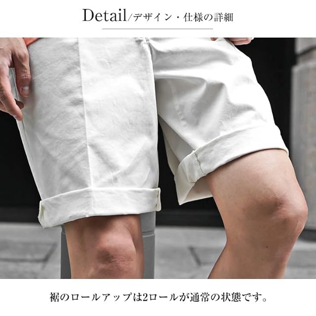 【detail(デザイン)】届いた時から黄金比でロールアップされており、美シルエットの丈感をすぐにお楽しみいただけます。伸縮性に優れた生地感で、穿き心地も◎ホワイト、ブラック、ベージュの合わせやすい定番カラーの3色展開。