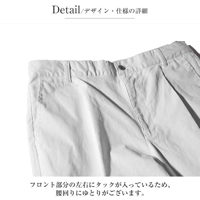 【material(素材感)】コットンを使用した肌触りの良い生地感。ポリウレタンの使用し、伸縮性も完備。【styling(おすすめコーデ)】Tシャツや半袖シャツなどと合わせたカジュアルな着こなしがおすすめです。