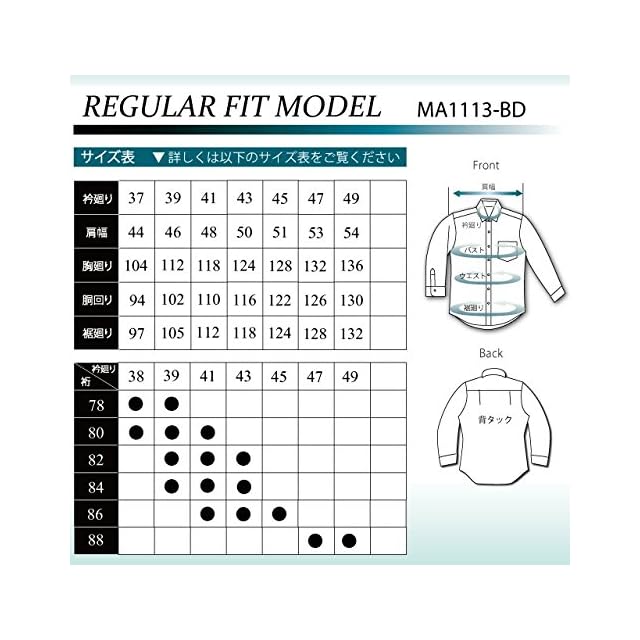 [スティングロード] 長袖 ボタンダウン 白ワイシャツ 形態安定 綿高率混 レギュラーフィット MA1113-BD-1 メンズ ホワイト 首回り39cm裄丈78cm