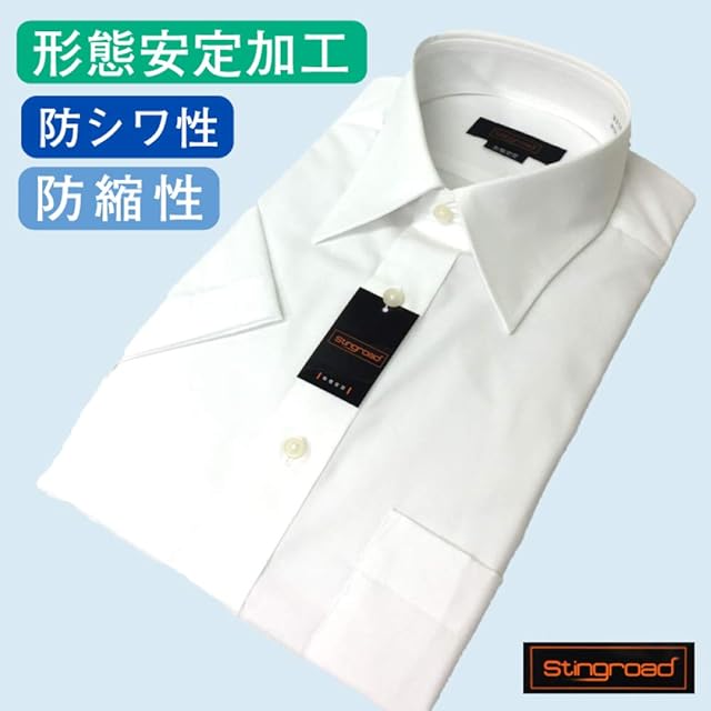 [スティングロード] 半袖 レギュラーカラー 白ワイシャツ 形態安定 ノーアイロン 綿高率混 レギュラーフィット MA100-1 メンズ ホワイト 首回り40cm