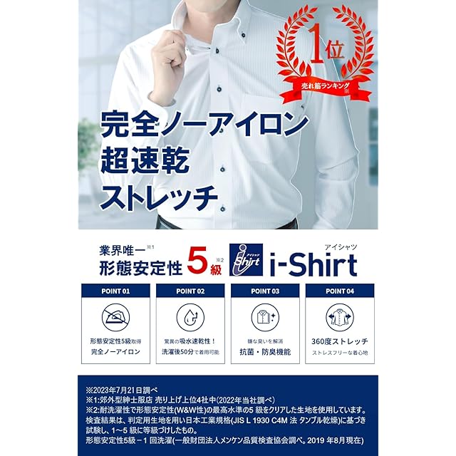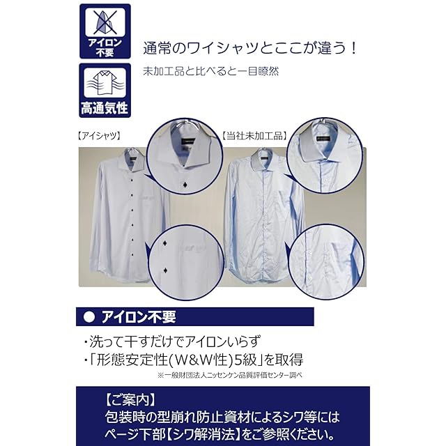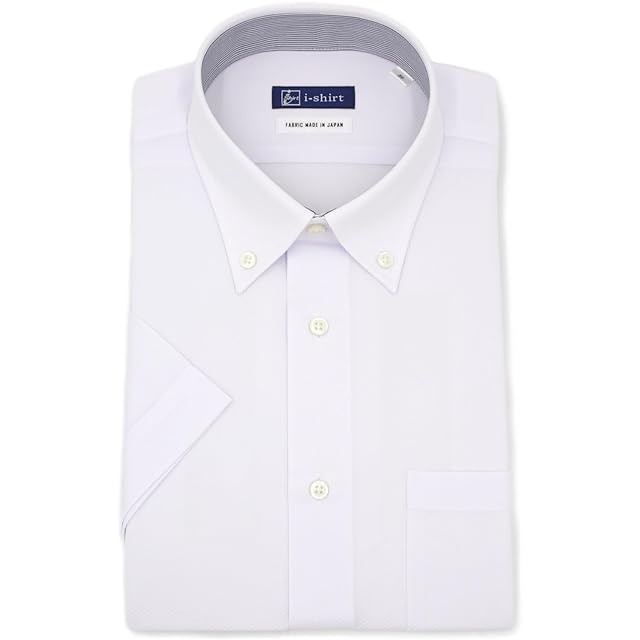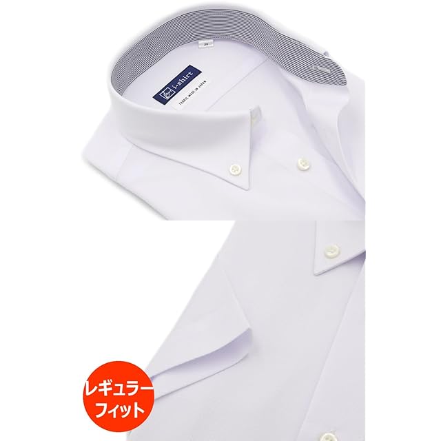 [アイシャツ] i-Shirt 完全ノーアイロン ストレッチ 超速乾 半袖 アイシャツ ワイシャツ メンズ ホワイト レギュラーフィット 半袖ボタンダウン ドビーチェック M16224000701 首回り45cm