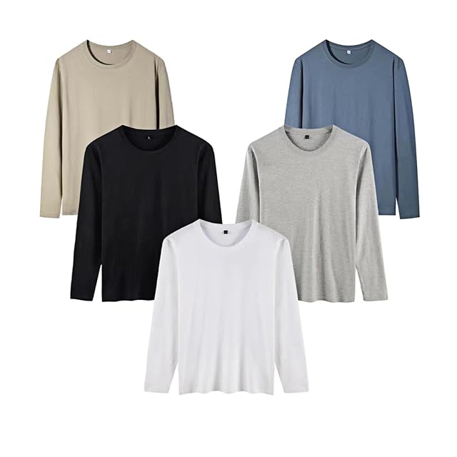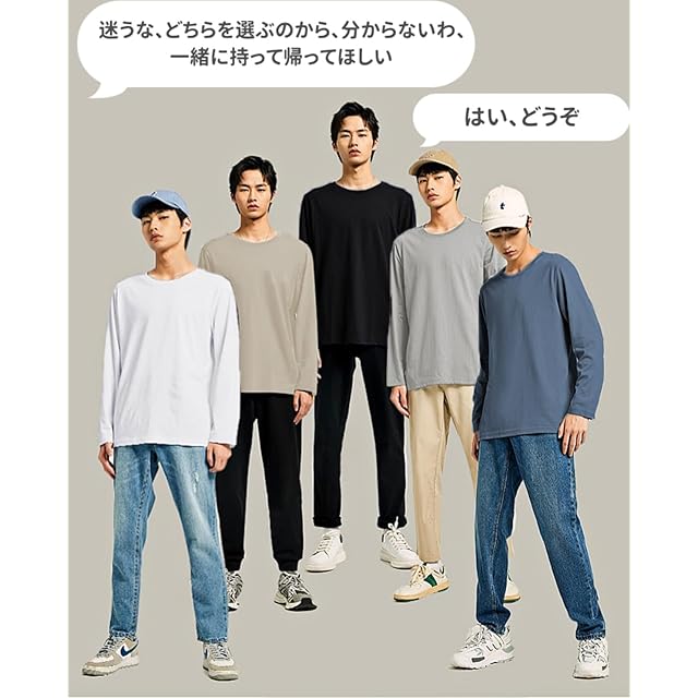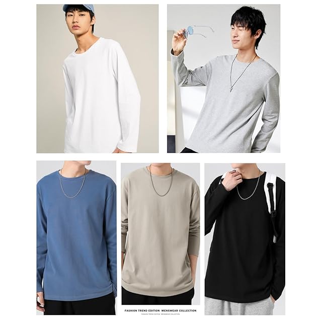 [SHINE MOON] インナーシャツ メンズ 長袖 Tシャツ 肌着 防寒 インナー ロング 綿100% 丸首 ヒートテック 保温 静電気軽減 メンズ 服 秋 冬 (マルチカラー, 2XL) | AVENIR