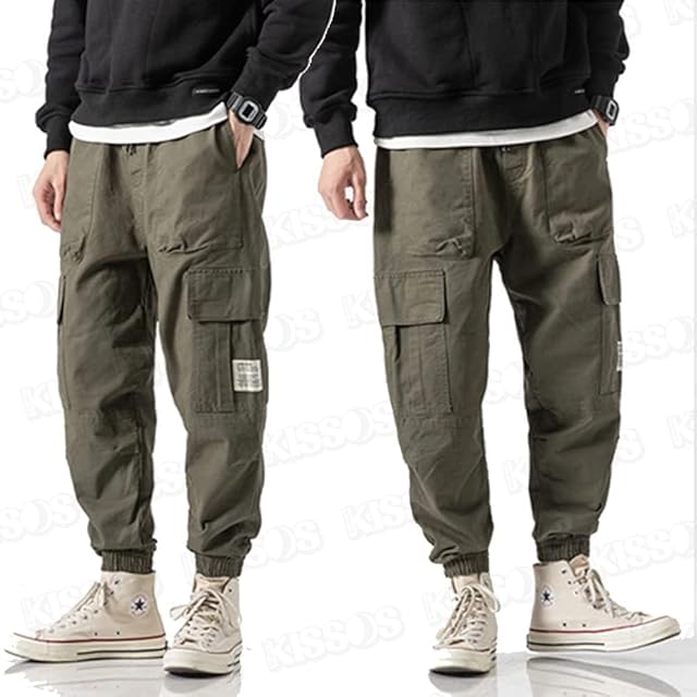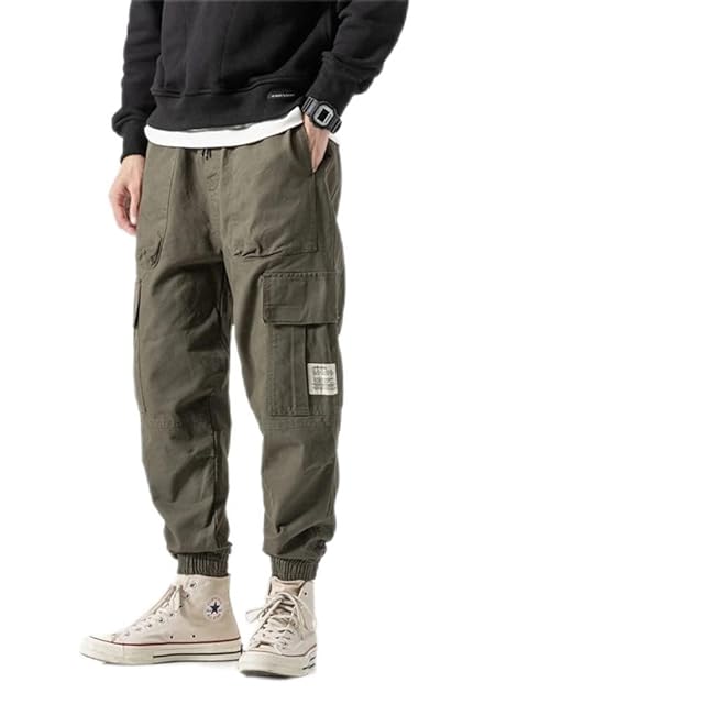 カーゴ パンツ ジョガーパンツ メンズ 韓国ファッション ストリート ワイド (Mサイス, モスグリーン)