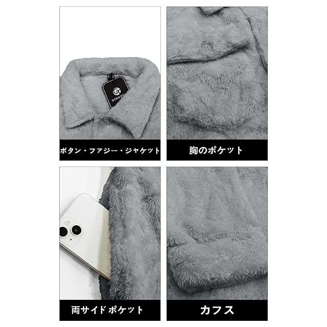 [GINGTTO] メンズ ボアジャケット 防寒 暖かい カジュアル 長袖 シンプル ライトグレー M