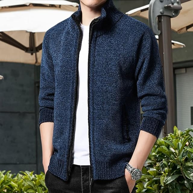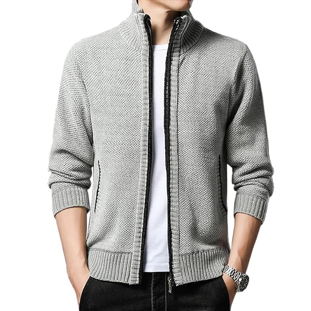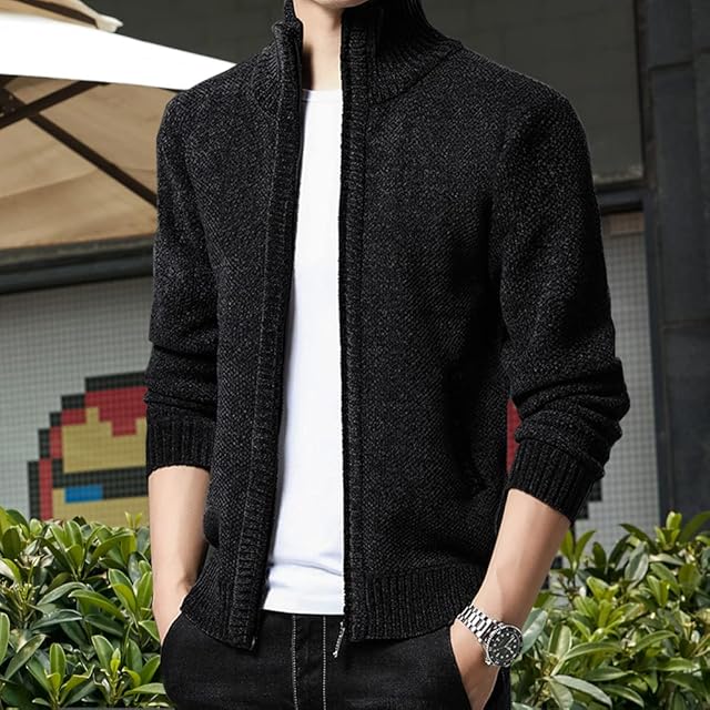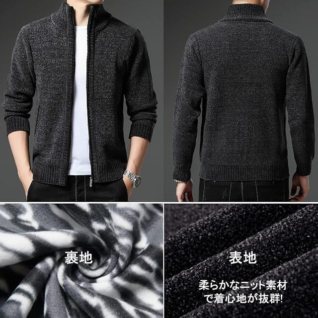 [ROOKMZU] カーディガン メンズ 冬服 アウター 冬 裏起毛 厚手 カジュアル フリース 暖かい タートルネック ベンチコート メンズ ニット ジップアップ 防寒着