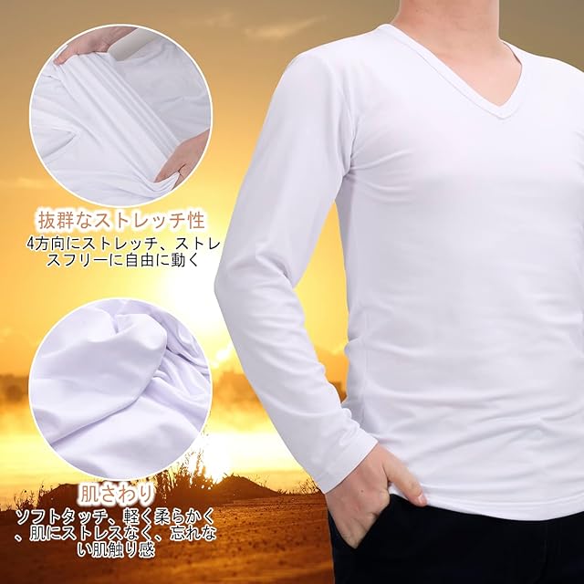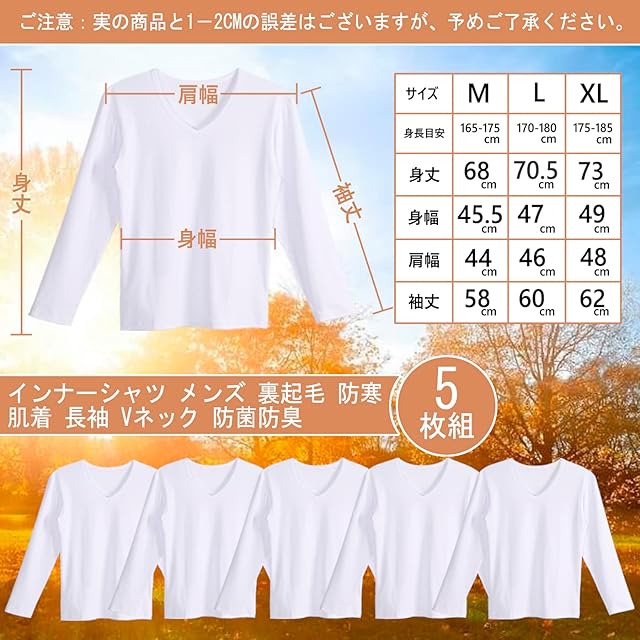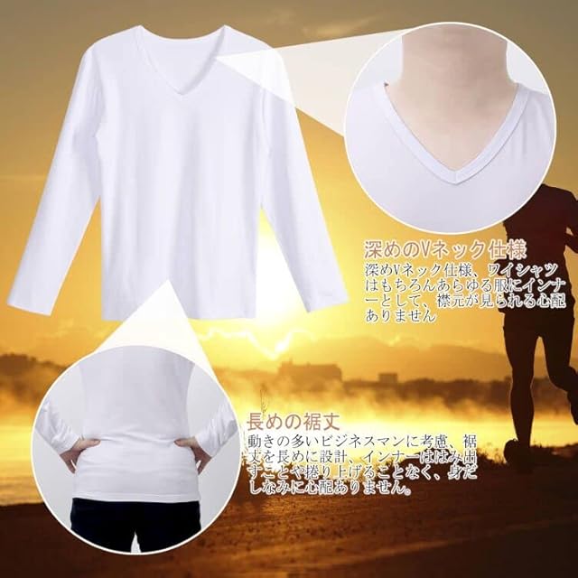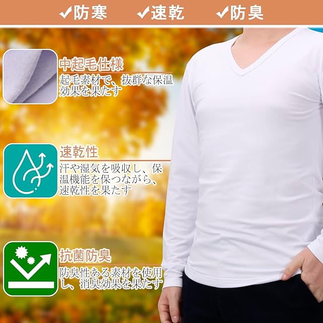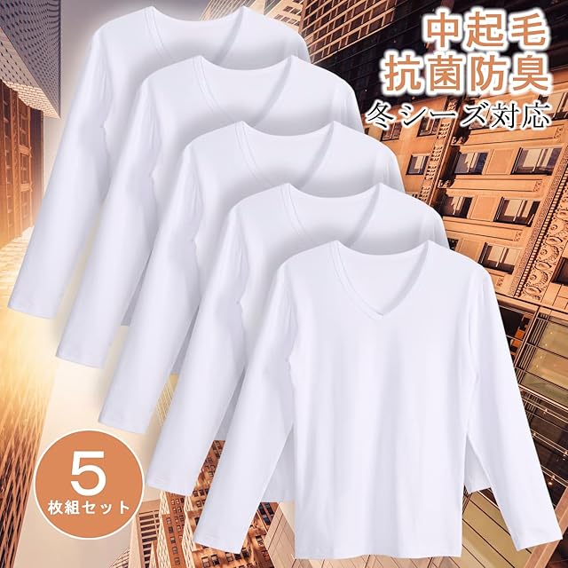 [SEDORELAR] インナーシャツ メンズ 裏起毛 防寒 肌着 5枚組 長袖 Vネック 防菌防臭 白 M