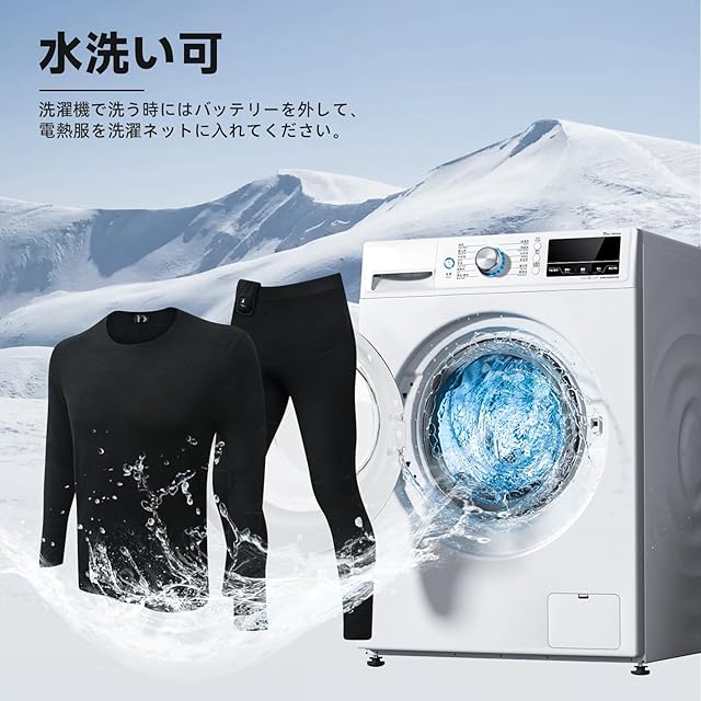 【男女兼用設計 & 水洗い可】電熱インナー 伸縮性の高い生地で、自由な動き、締め付けのなさを実感できます。裏地には上質であたたかいフリース素材を使用しており、肌にやさしく快適です!表地は色落ちしにくく、縮みにくく、毛玉になりにくい素材です。電熱インナーセットは水洗えるので、手で洗っても洗濯機で洗っても破損の心配は全くありません。洗濯機で洗う時にはバッテリーを外して、電熱服を洗濯ネットに入れてください。