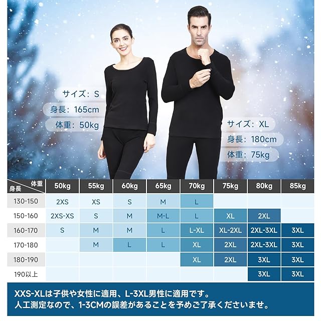 【パッケージ内容】電熱服セット(電熱トップス+電熱パンツ)*1、 3000 mAhバッテリー*2、充電アダプター*1、取り扱い説明書*1。ご注意: 屋外で長い時間を過ごす場合は、スペアバッテリーを準備しておいてください。