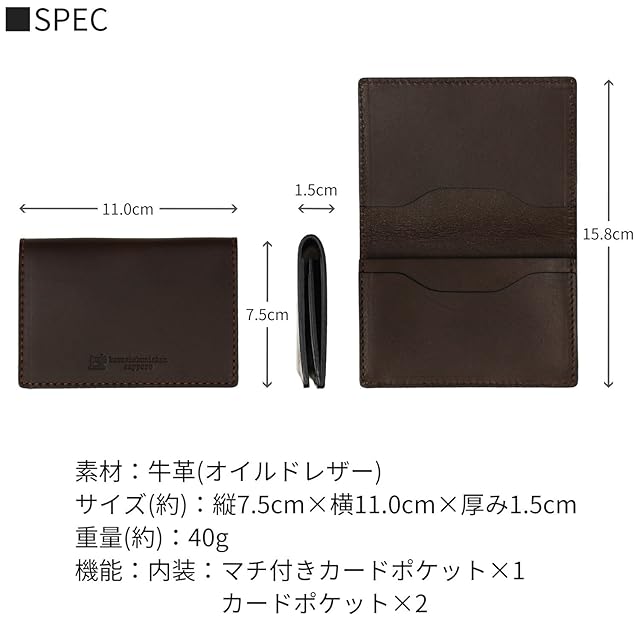 [カワショクニンカンサッポロ] [札幌革職人館] 名刺入れ 日本製 牛革 オイルドレザー ダークブラウン