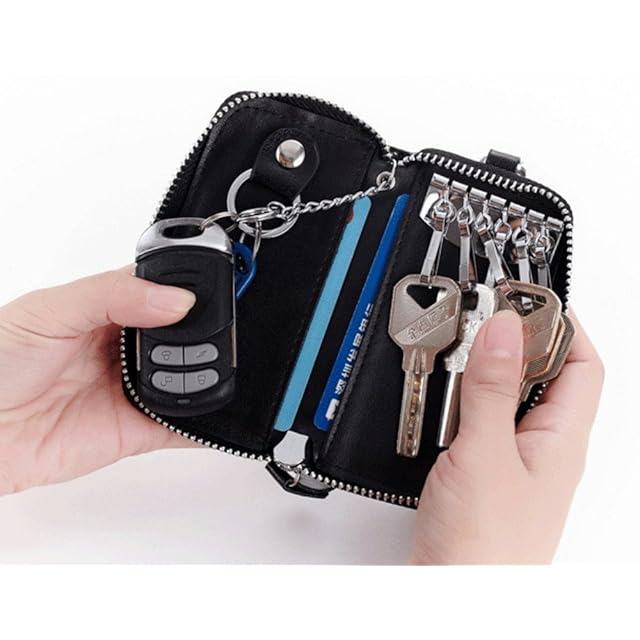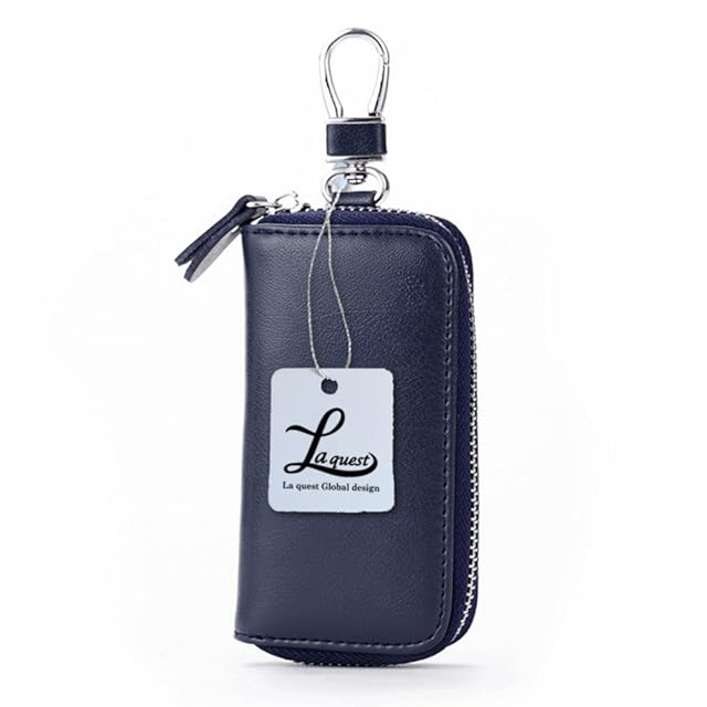 [Laquest] (ラクエスト) 牛革 ラウンドファスナー 6連 キーケース スマートキー & カード 収納 (ネイビー)