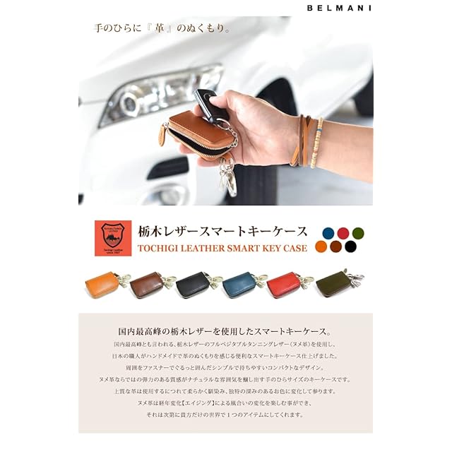 国内最高峰の栃木レザーを使用したスマートキーケース。
