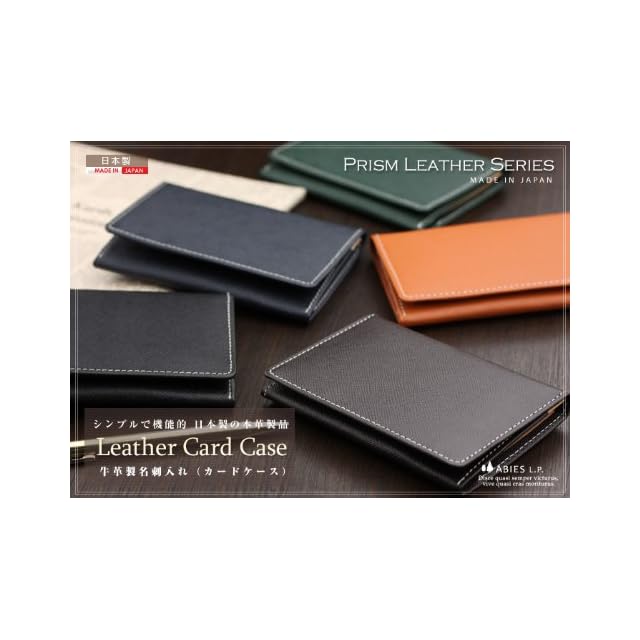 [アビエス] 日本製 本革 名刺入れ プリズム(角シボ型押し牛革) グリーン
