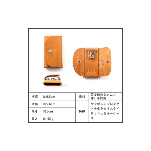【素材】植物タンニン鞣し国産牛革、【背面にはカードポケット】金具の鍵とカードキーをワンセットで持ち歩けるキーケースの想定で作られていますが、カードキーを収納予定の箇所に定期券や、免許証、クレジットカードなど色んなカードを収納することは可能です。普段は定期入れだけ、財布やキーケースと別で持ち歩いているという方におすすめのカードケースです。