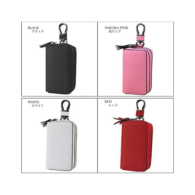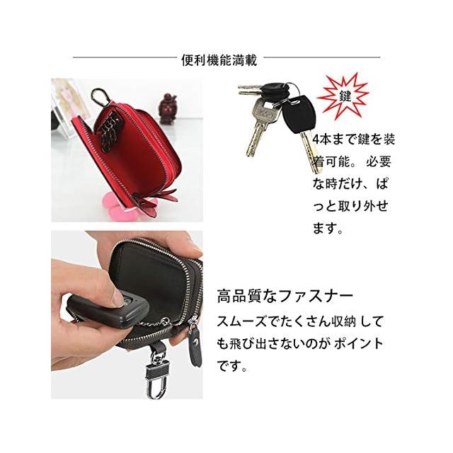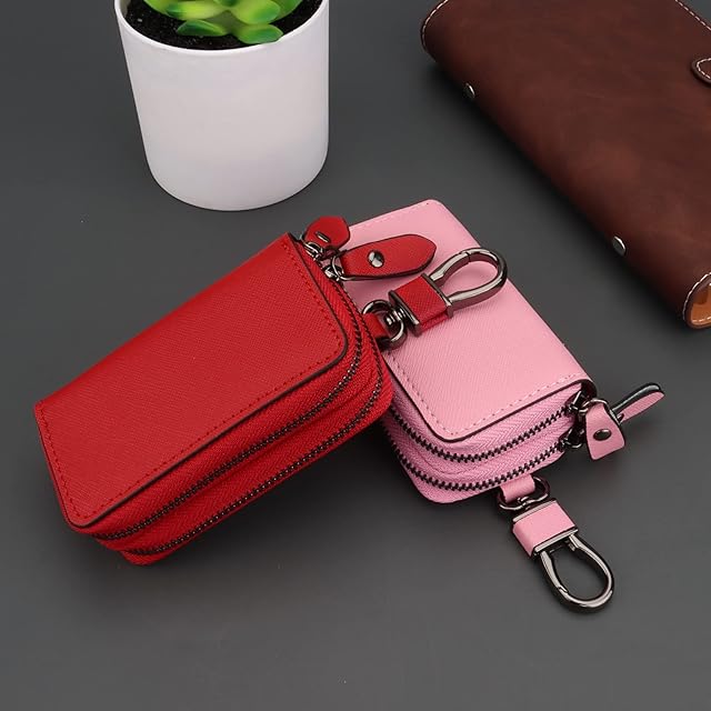 [MBOYU] キーケース ダブルファスナー スマートキーケース 2つ 鍵が同時収納 車キーケース メンズ レディース 革 プレゼント (ピンク)
