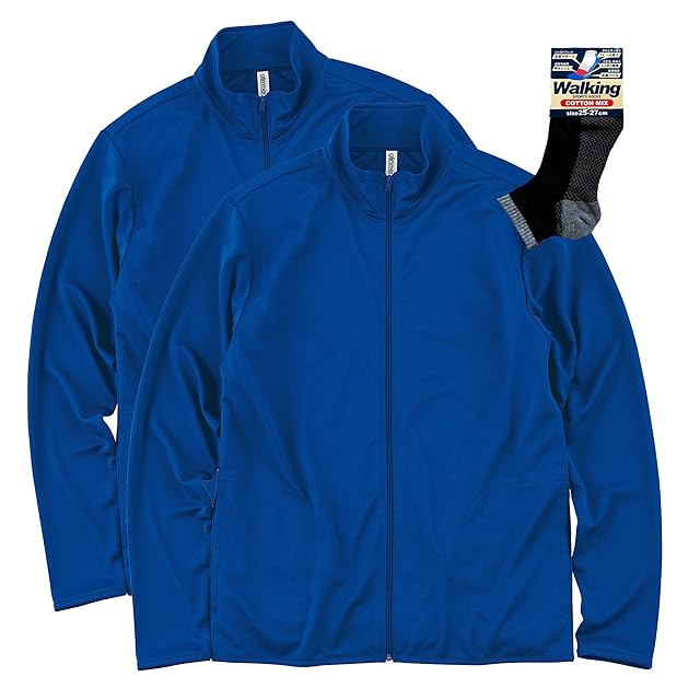✅UVカット&吸汗速乾で使いやすいスタンドカラーのドライジップジャケット2枚組+スポーツソックス付き。※ソックスカラーは変更となる場合がございます。