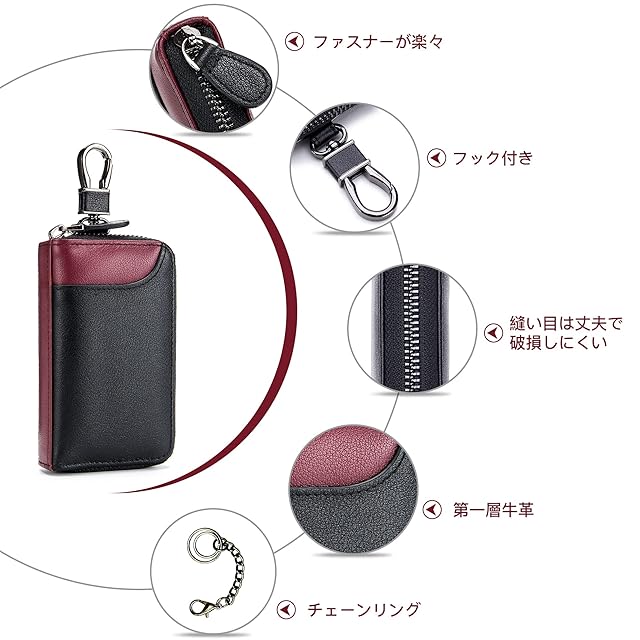 ✅【上質な第一層牛革】牛革の最表面の皮を使用したキーケース。本革の質感、タイトな牛革、素晴らしい光沢、強い靭性と通気性があるもので。より耐久性があり、より快適な感触、より上品な味があります。粗悪な革製品とは一線を画す上質な質感をお楽しみください。
