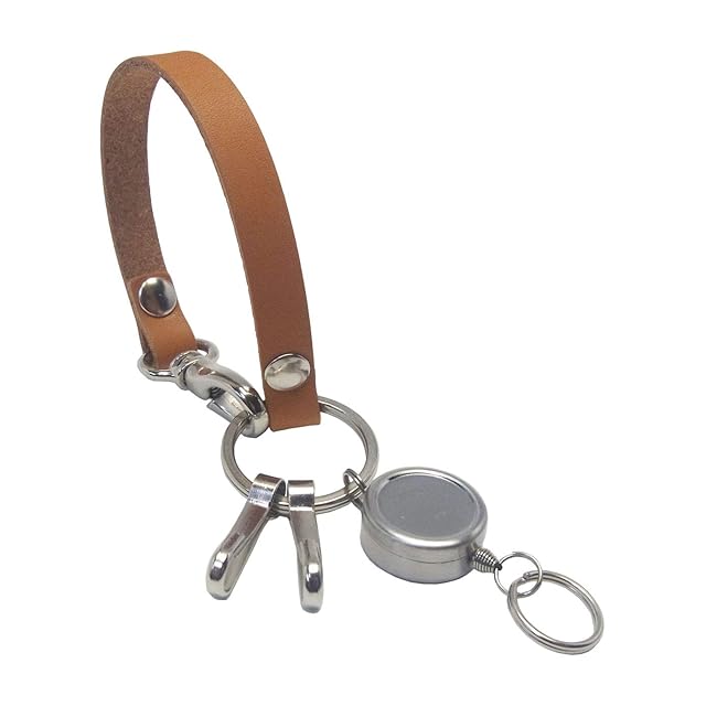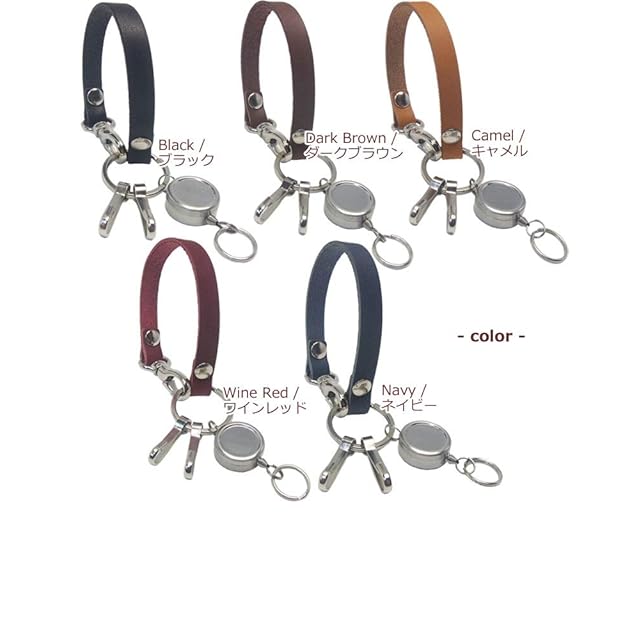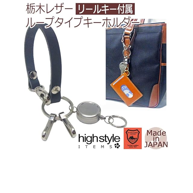 [highstyle] リールキー 栃木レザー キーホルダー 日本製 栃木レザー&リールキー&2連フック ループタイプ キーホルダー (キャメル)