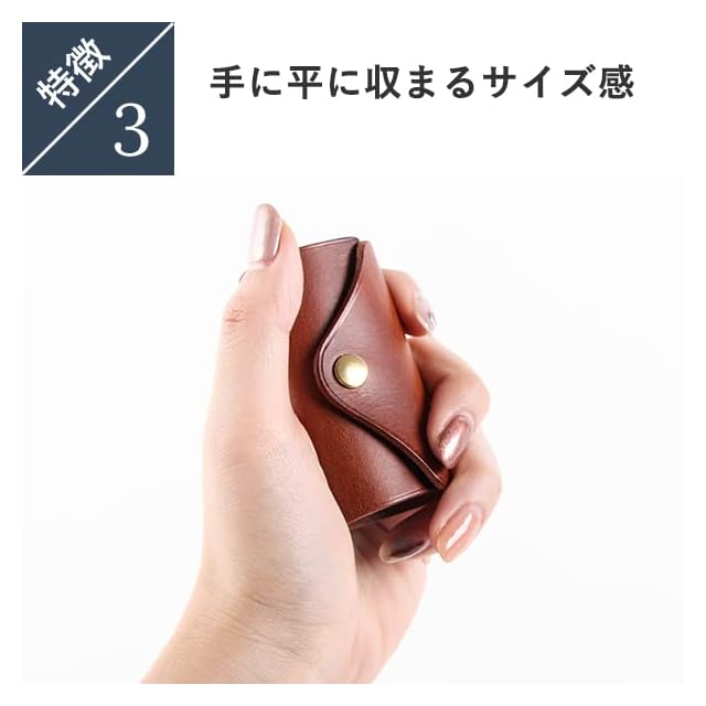 【手に平に収まるサイズ感】シンプルなデザインなだけでなく、コンパクトに作られているので、手の小さい女性も片手で使い易いサイズ感。キーを入れてもサイズ感が変わらず使用できます。鍵をたくさん入れても少なくても、おしゃれなキーケースとしてのフォルムが崩れことはありません。