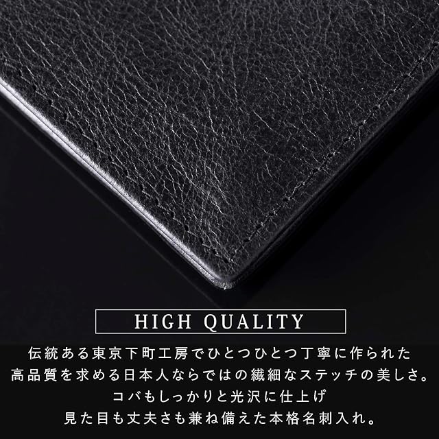 【上質な高級本革を使用】 伝統ある東京下町工房の熟練した職人が心を込めて丁寧に手作りした、ハイクオリティの名刺入れです。素材は厳選した高級本革を使用し、傷が目立ちにくいビンテージ加工を施す事で光沢のある上品な見た目を実現しました。熟年技ならではのステッチの美しさも是非お楽しみください。