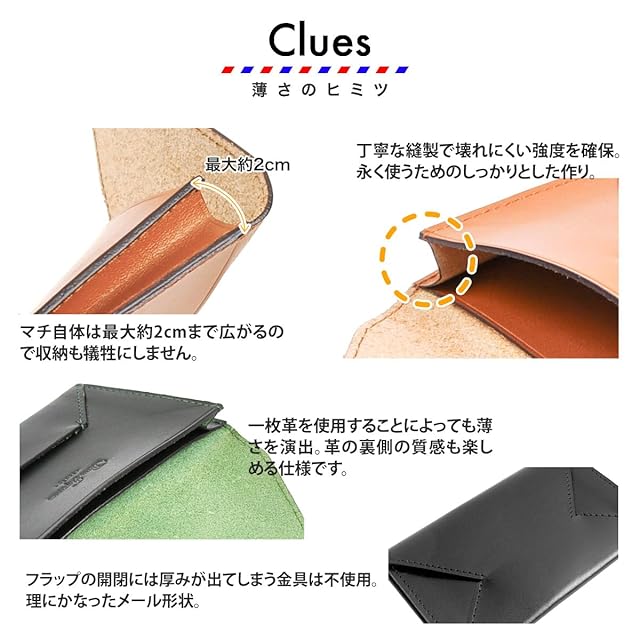 [サイズ] 縦76mm × 横112mm× 厚み7mm・重さ40g [素材] 本革 イタリアンレザー [推奨収納量] 一般的な名刺20枚まで