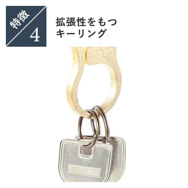 真鍮(しんちゅう)素材なので丈夫、少しずつ色の変化も楽しむことのできる素材です。真鍮素材ながら軽さのあるデザイン性で、鍵を取り付けたあとも重さに関してストレスを感じることはありません!