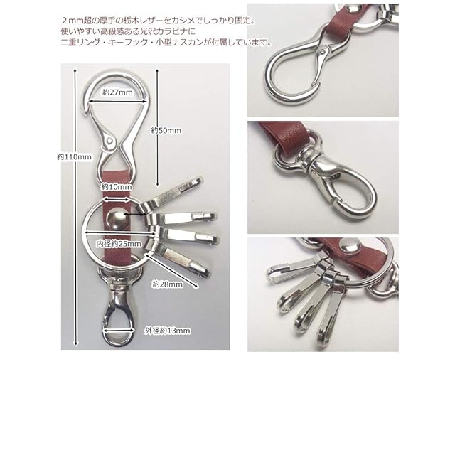 ◆仕様:ミニカラビナ×1、キーフック×4、二重リング×1、小型ナスカン×1