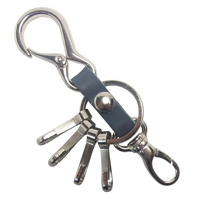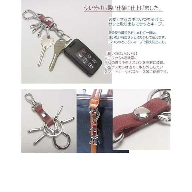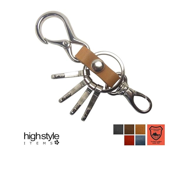 [highstyle] 栃木レザー&ミニカラビナ&4連フック+小型ナスカン キーホルダー (シルバー/ネイビー)