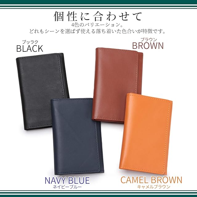 ■商品詳細 【メイン素材】牛革レザー 【サイズ】縦7.5cm 横11.0cm 厚さ0.8cm 重さ27g 【カラー】ブラック・ネイビー・ブラウン・キャメル ※恐れ入ります。商品は本革を使っているため作業工程でスジや保湿用オイルがついてる場合がございます。何とぞ御了承下さいませ。
