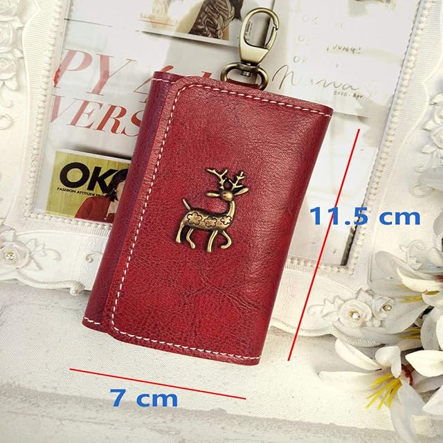 【メイン素材】 PU革 。高さ 11.5cm×長さ 7cm×厚さ 1cm。キーフック×6 、内側カードポケット×3