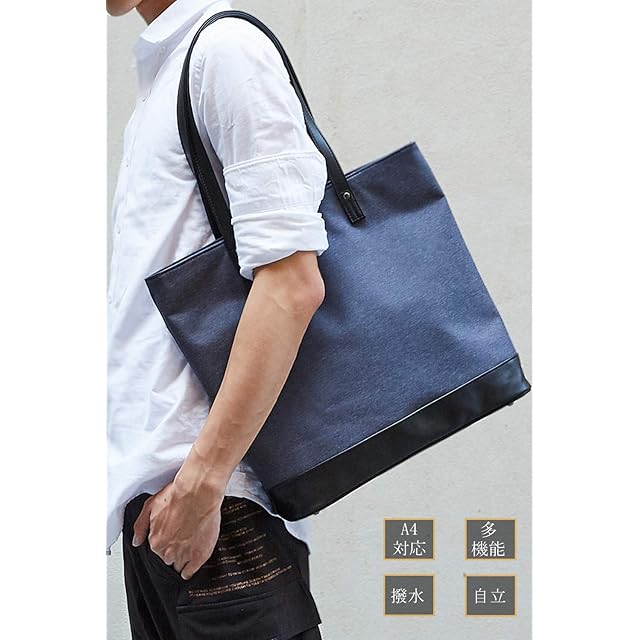 [UNISOUL] [ユニソール] トートバッグ メンズ ビジネス トート 3色 ナイロン 撥水 大容量 a4 通勤 通学 軽量 カジュアル 縦型 旅行 (ネイビー)