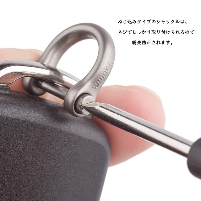ねじ込みタイプのシャックルは、ネジでしっかり取り付けられるので紛失防止されます。ストラップ、キーホルダー、ハンドバッグ、財布、バッグ、ファスナー、ベルト、腕ひも、手工芸品などにも使えます。注意:この製品は登山用ではありません。