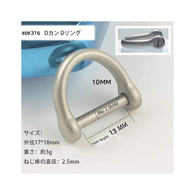 Dリング:サイズ:横外寸18㎜*縦外寸17㎜ 横内寸13㎜*縦内寸10㎜ ボルト径2.5㎜ 重さ:3g/個