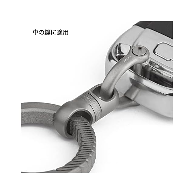 [車のキーホルダーとして]軽くて強い、錆びないし磁気も帯びないチタンから作り出すキーリングは素材の高級感と、職人の丁寧な手磨きから作り出すしっかりした構造を兼ね備えております。毎日持ち歩く車のキーホルダーとして、軽量で持ち運びしやすいだけでなく、高級感もたっぷりです。