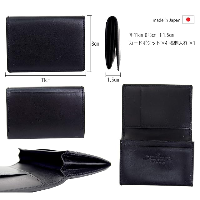 【素材】牛革 【サイズ】幅(W)11cm×長さ(D)8cm×高さ(H)1.5cm 【仕様】カードポケット×4 名刺入れ×1