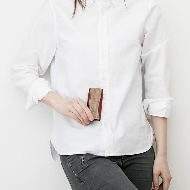 ウッド部分は天然木ながら特殊加工により柔らかく曲がります。磨きこまれた家具のような滑らかな手触りが人気です。ウッド部はポケットになっていますので、レシートやチケット・駐車券などが挟めます。手にすっぽりと収まるサイズ感とコロンとしたフォルムが人気のキーカバーです。