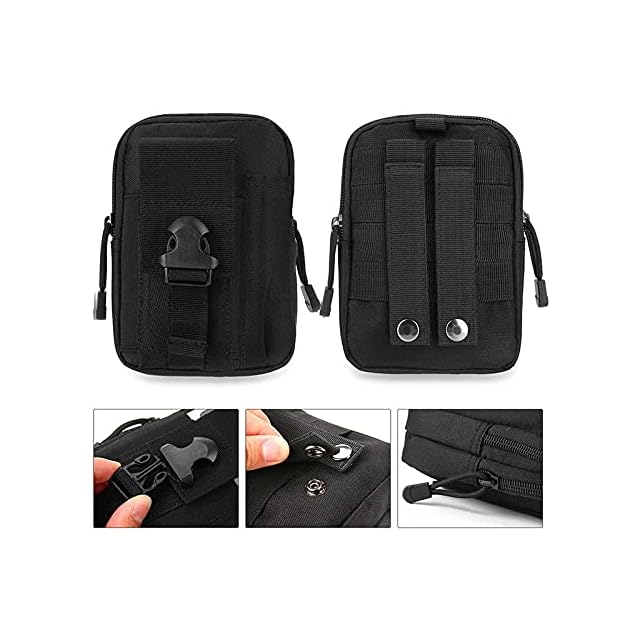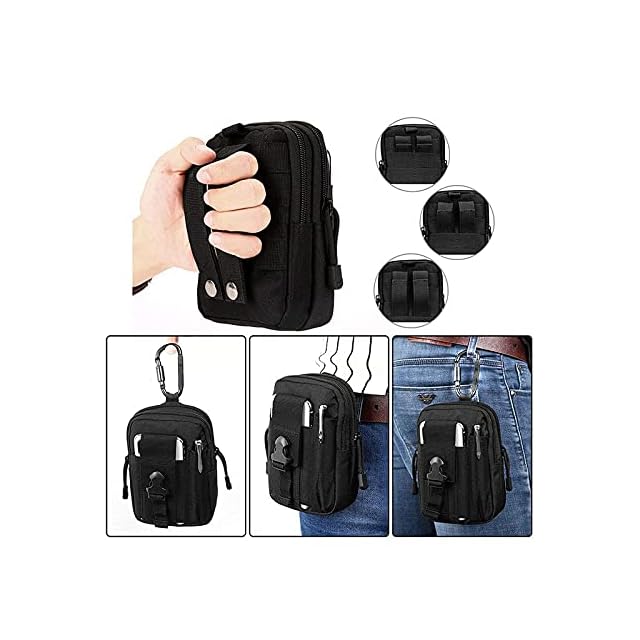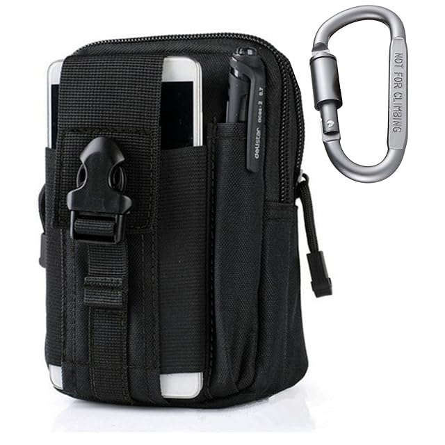 TSUCIA 多機能ポーチ ウエストバッグ 収納 マルチケース ベルト通し 撥水加工 旅行 アウトドア ハイキング 小物入れ コンパクト マルチウェストポーチ カラビナ 付き Molle対応 (ブラック)