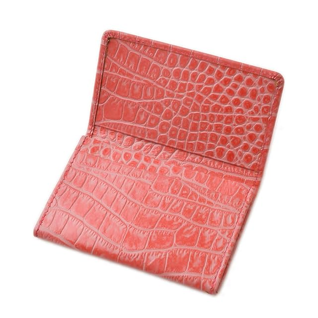 [ファクトリー禅桜] 名刺入れ レディース 本革 シンプル 薄型 軽量 カードケース クロコ型押し レザー ピンク