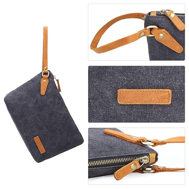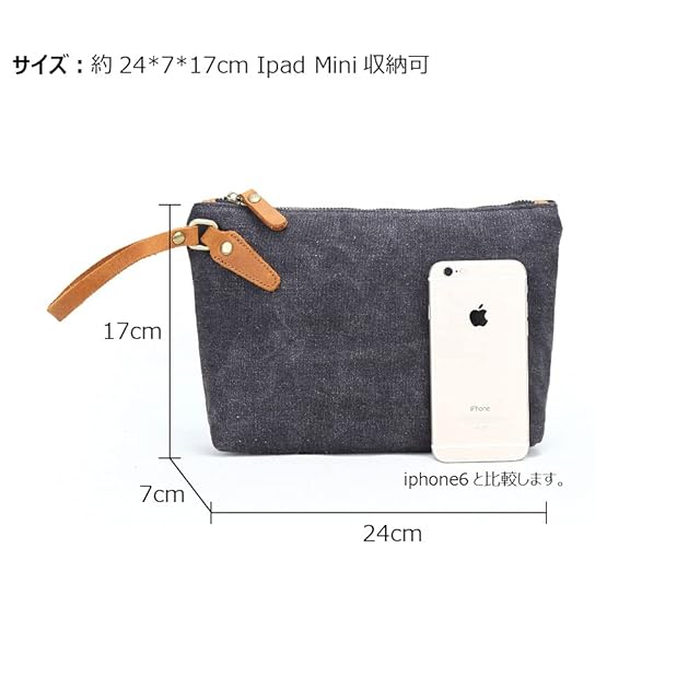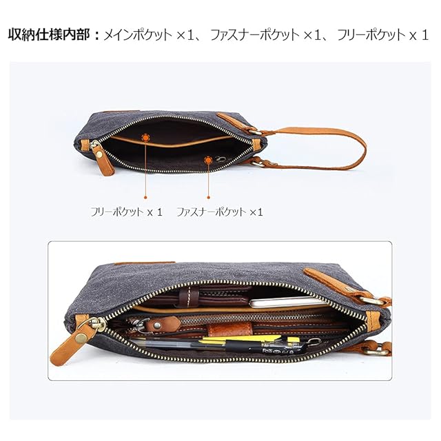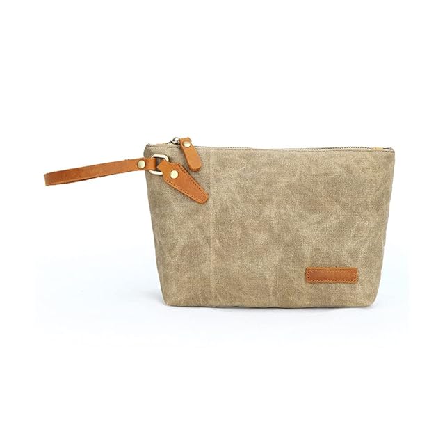 [Whatna] 厚手帆布x牛革 ミニセカンドバッグ メンズ バッグ 小さい 化粧かば ポーチ 小銭入れ Ipad Mini収納可 カジュアル バッグ 手持ち バッグ 小鞄 紳士用 男性用バッグ 260 (カーキ)