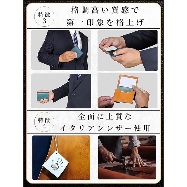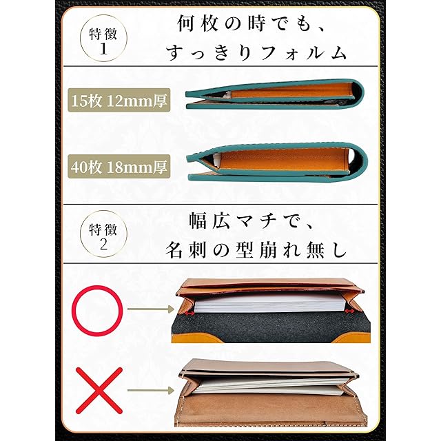 ✅【 すっきりフォルム 】この 名刺いれ は、約1cmの 薄型 で、スーツや胸ポケットにいれても嵩張りません。独自のササマチ構造により、収納枚数に関わらず、常にスマートなフォルムを維持できます。