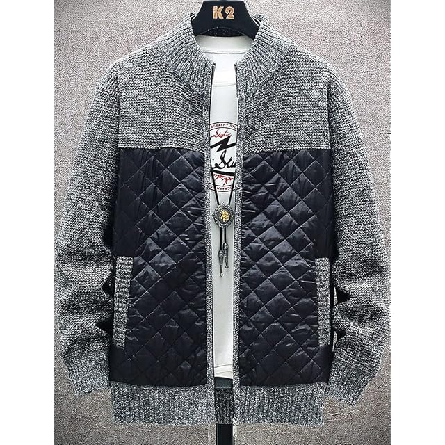 [アスペルシオ] 長袖 スタイリッシュ フルジップ ニット ジャケット メンズ アウター スタンドカラー 異素材 v系 裏フリース ヒップホップ ボア ブルゾン ジップアップ 裏起毛 切り替え ストリート ニットジャケット キルティング ハイネック 羽織り お洒落服 アウトドア セーター ジャンパー 通勤 フードなし ポケットあり アウターウェア ジップカーデ フルジッパー (XL) ダークグレー