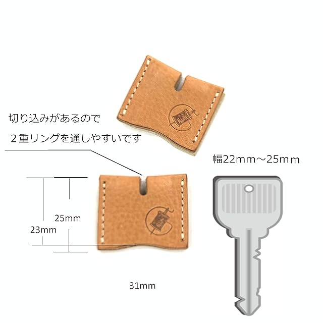 アイテムサイズ横31mm×高26mm (アールで低い部分天地25mm) 鍵のサイズは約横25.26mm前後 入れる時はきつく感じるかもしれないですがぶかぶかしないように制作しております