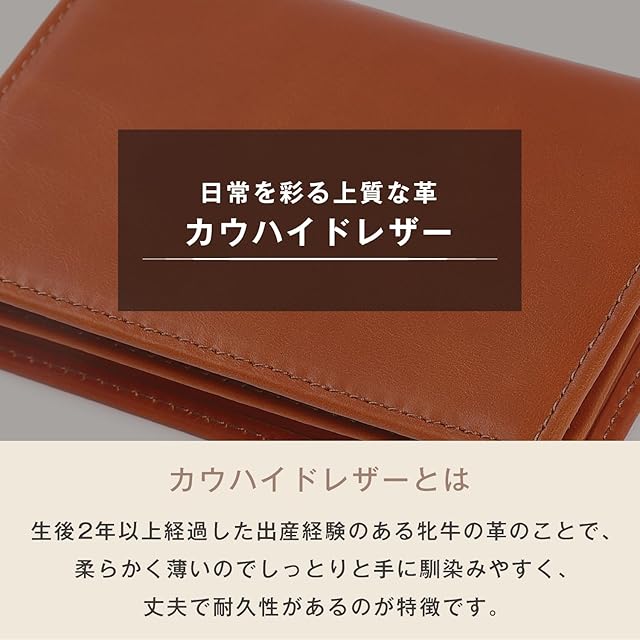 【選び抜かれた本革素材】上質なカウハイドレザーを使用。手にしっとり馴染む柔らかなレザーは、使い込むほどに味わいが深まり、自分だけの一品になります。