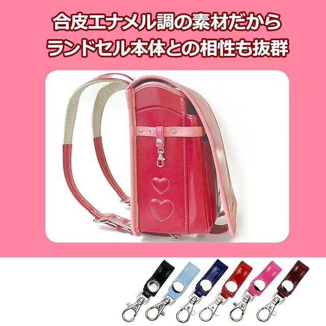 合皮エナメル調の素材だからランドセルとの相性もバッチリ。