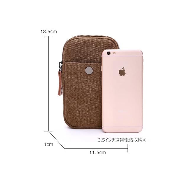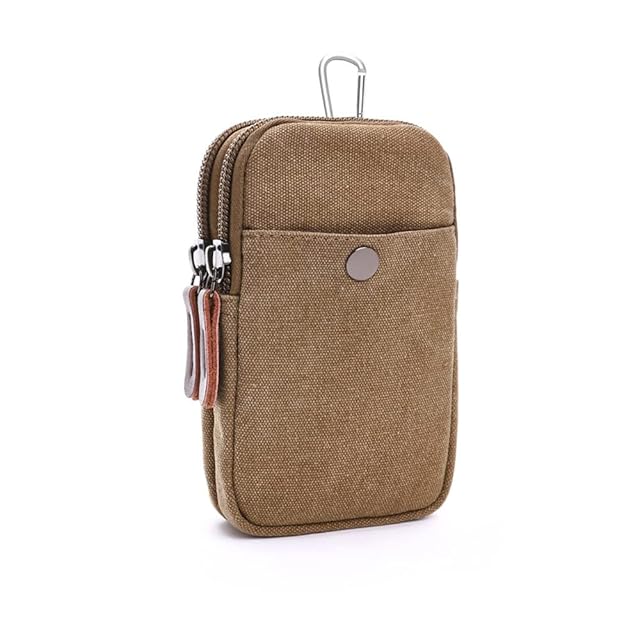 [Whatna] 帆布xレザー ミニセカンドバッグ メンズ レディース 3way ベルト ポーチ 登山ポーチ 小銭入れ 丈 夫 キャンバスx 革 2室仕切 カラビナポーチ ミニ ウエストバッグ カラビナ付き ミニバッグ 男性 女性用 8697 (ブラウンA)