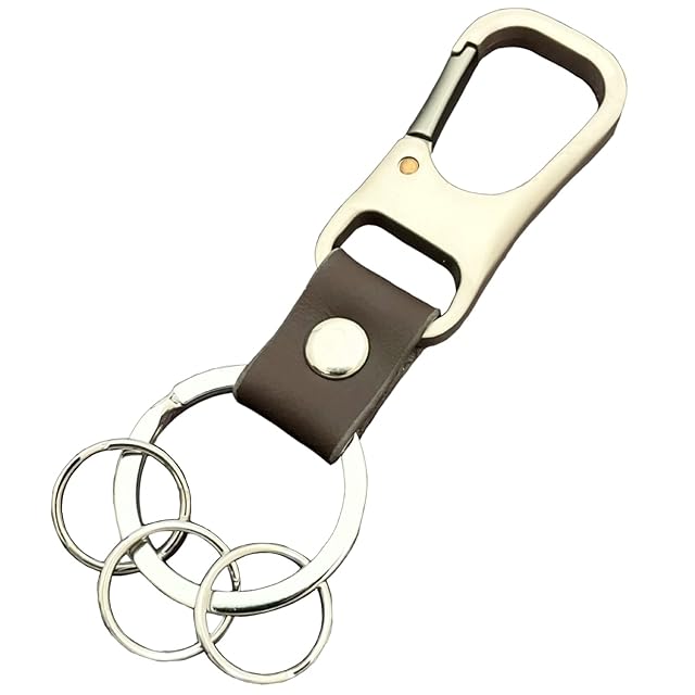[TAKES] キーホルダー 本革 レザー カラビナ キーリング メンズ おしゃれ リング 3個付き 金属 鍵 (選べる3色) (ブラウン)