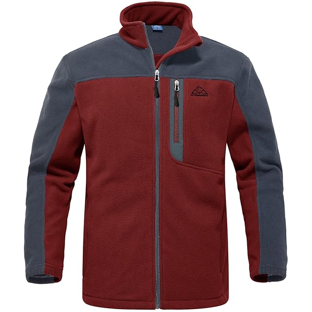 [Gopune] フリースジャケット メンズ ゴルフウェア アウトドア ジャケット ソフトシェル 登山服 フルジップ コート ウォーム 軽量 ハイネック 釣り スポーツ 春秋冬(01レッド 2XL)