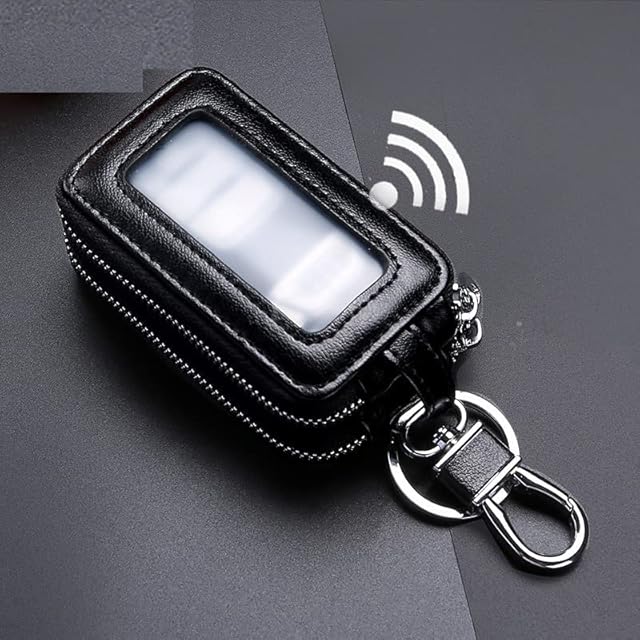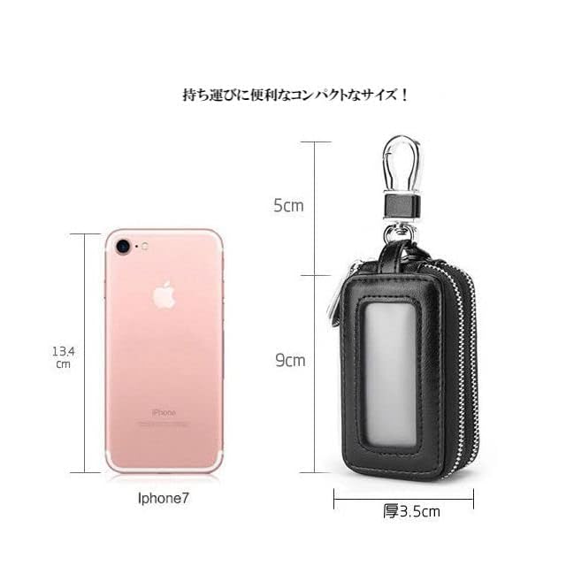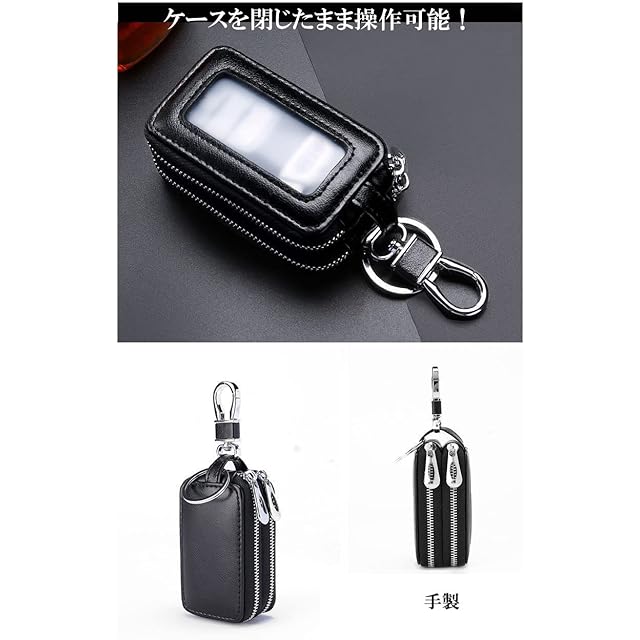 [pont du monde] スマートキー キーケース 鍵入れ 革 レザー 男女兼用 (ダブルポケット 黒)
