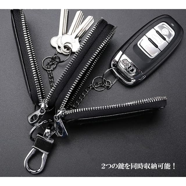 スマートキー/鍵ケース。ダブルポケットで、スマートキー、金属の鍵等2個収納可能です。鍵以外にもカード等その他小物も収納可能です。