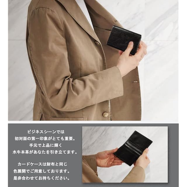 [リンレ] 名刺入れ メンズ 名刺ケース カードケース レザー 革 本革 水牛革 大容量 ブランド オイルドレザー 使い込むほどに艶が出る 父の日 薄型 父の日 専用ボックス付 ブラック 黒